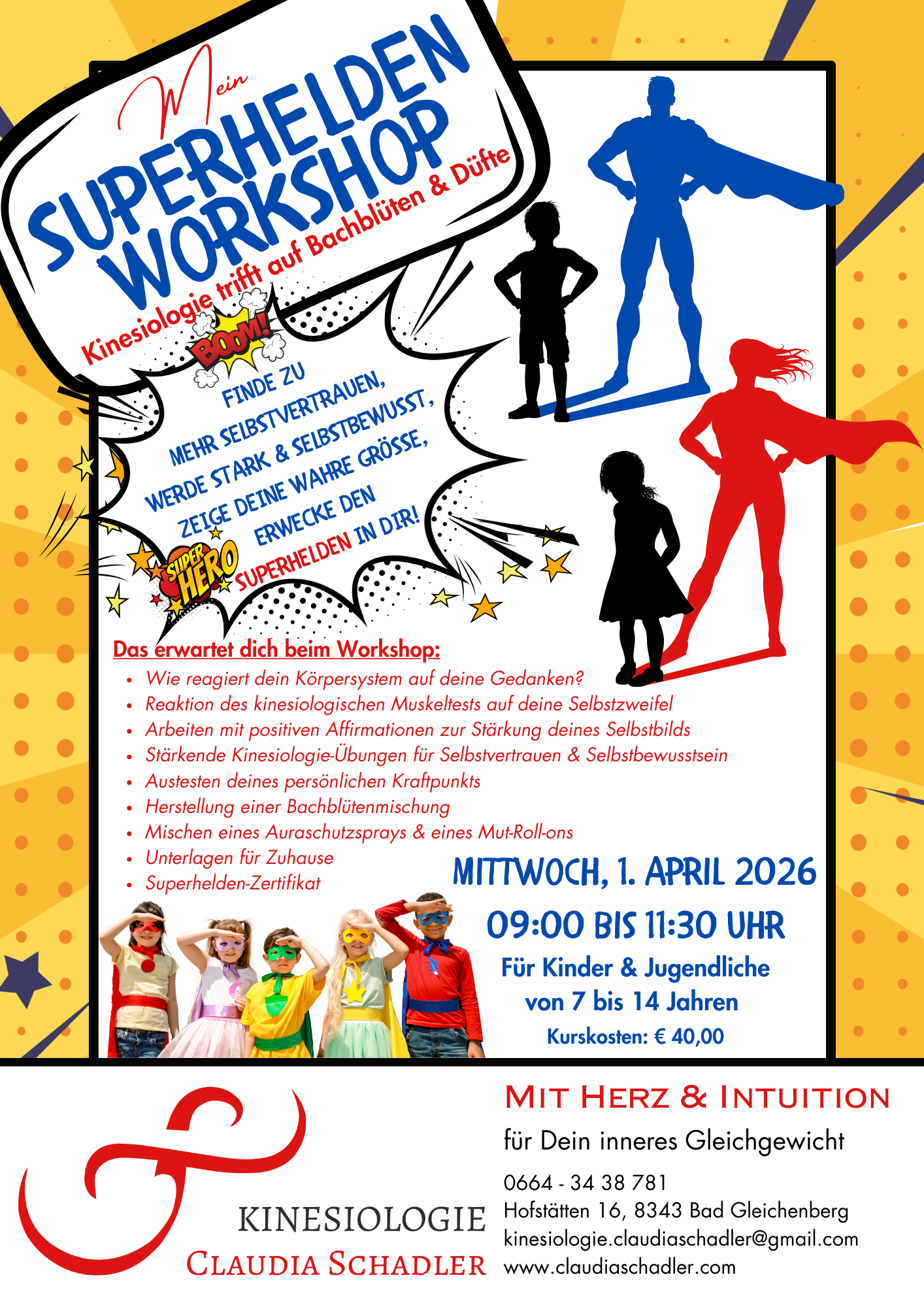 Inklusive Unterlagen für Zuhause, Arbeitsmaterialien, Bachblüten-Mischung, Auraspray, Roll-on & Superhelden-Zertifikat